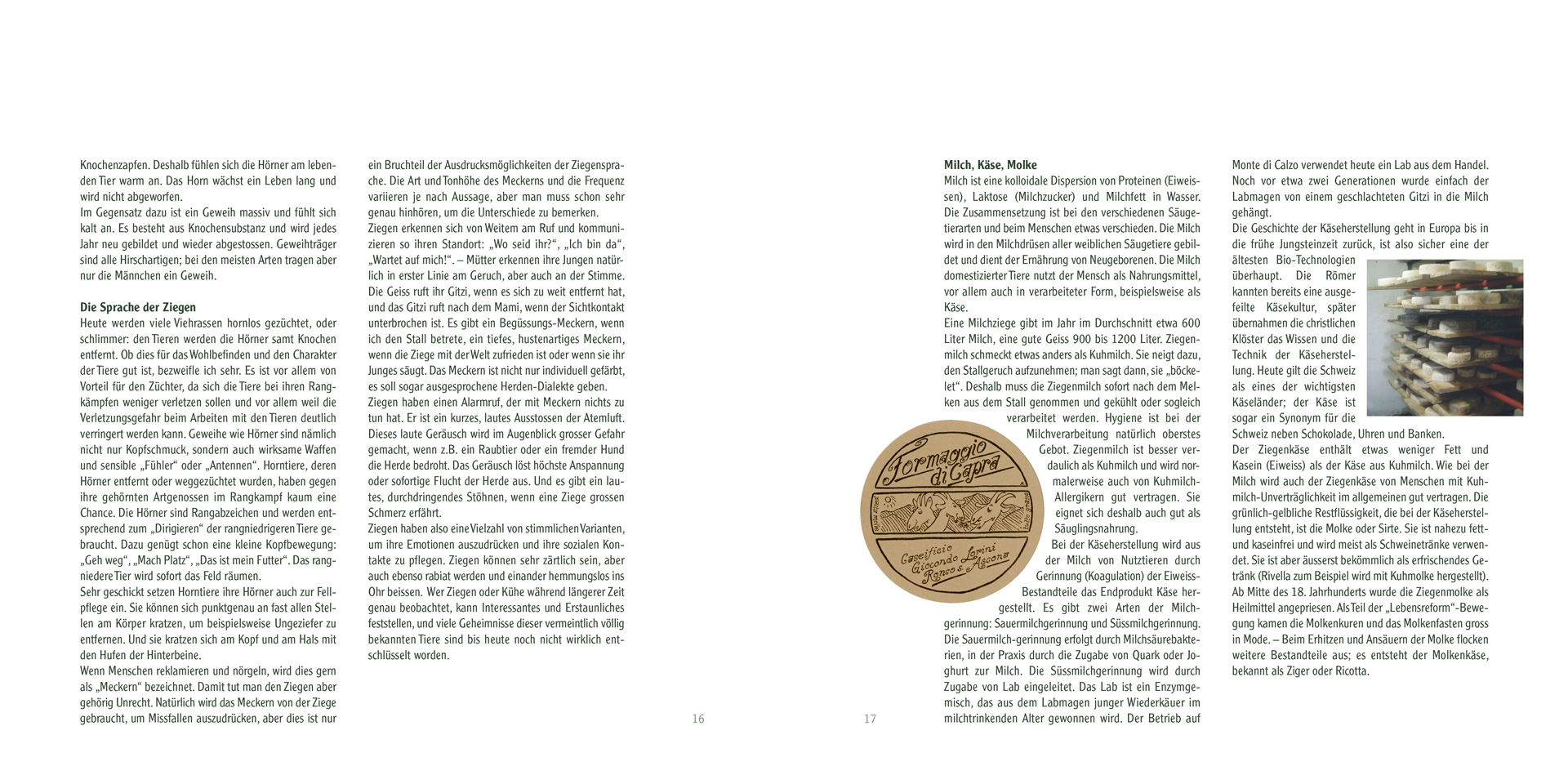 Mit einer «Kleinen Ziegenkunde» wird der Leser mit Ziegenzucht und Käserei in knapper, gut verständlicher Form vertraut gemacht.