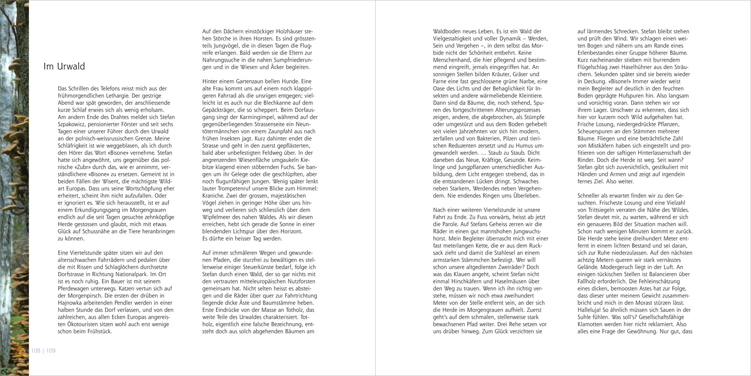 Als Fotograf verzichtet der Autor weitgehend auf Bilder aus monotonen Wirtschafsforsten. Seine Motive suchte und fand er vorab in naturgemäss oder naturnah bewirtschafteten Wäldern, in Waldreservaten mit alten Baumbeständen, in abgelegenen Bergrevieren sowie in Relikten echter Urwälder.
