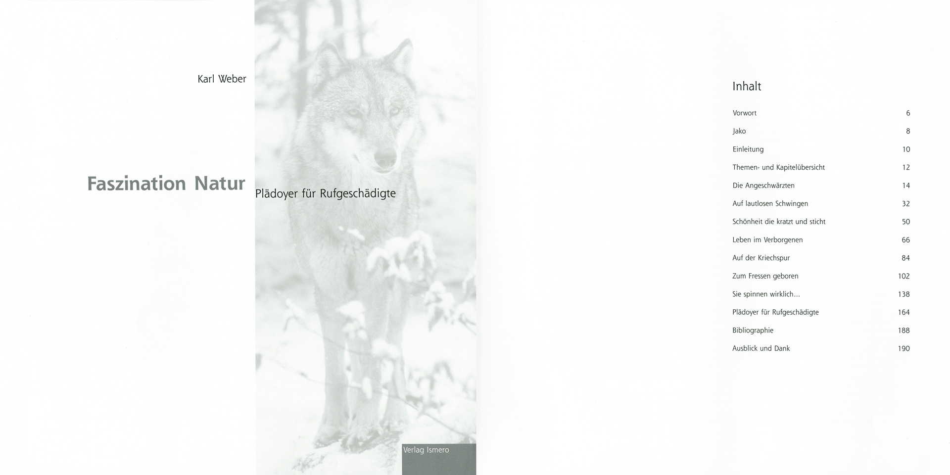 Mit Faszination Natur präsentiert der Rheinfelder Naturfotograf und Publizist Karl Weber nach «Erlebnis Wald» ein weiteres, zweibändiges Werk, beim Verlag Ismero. Es basiert auf einer zwischen 1999 und 2005 in einer renommierten Schweizer Monatszeitschrift veröffentlichten naturkundlichen Reportageserie. Diese fand mit ihrer Themenvielfalt bei der Leserschaft grossen Anklang und hatte zahlreiche Anregungen bezüglich einer Herausgabe in Buchform zur Folge. In Zusammenarbeit von Autor und Verlag entstand die vorliegende Auswahl an Themen und Bildern aus dem grossen Fundus von Karl Webers Lebenswerk.